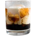 Café Espresso, Leche de Coco fría, Hielo Cristal.
