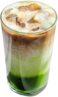 Matcha con Café Espresso, (con o sin) Leche fría, Hielo Cristal.