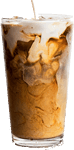 Café Espresso, Leche fría Saborizada con Cacao Importado, Hielo Cristal.